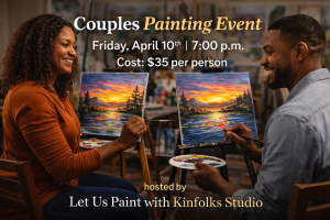Biblically Married Couples are invited to attend a Painting Event on Friday, April 10th @ 7:00 p.m. in the Gym. This will be the first event of the year. The cost is $35 per person, and you may buy your tickets and sign up in the foyer after morning worship service today, March 22nd and March 29th. Let Us Paint with Kinfolks Studio is hosting this event, and the session will start promptly at 7:15 p.m. Any couple that shows up after 7:30 p.m. will not be able to paint with the group. Refreshments will not be served, but you may bring whatever you choose. The session will last 2 ½ hours. For more information, please visit the table in the foyer. (NO CASH WILL BE ACCEPTED)